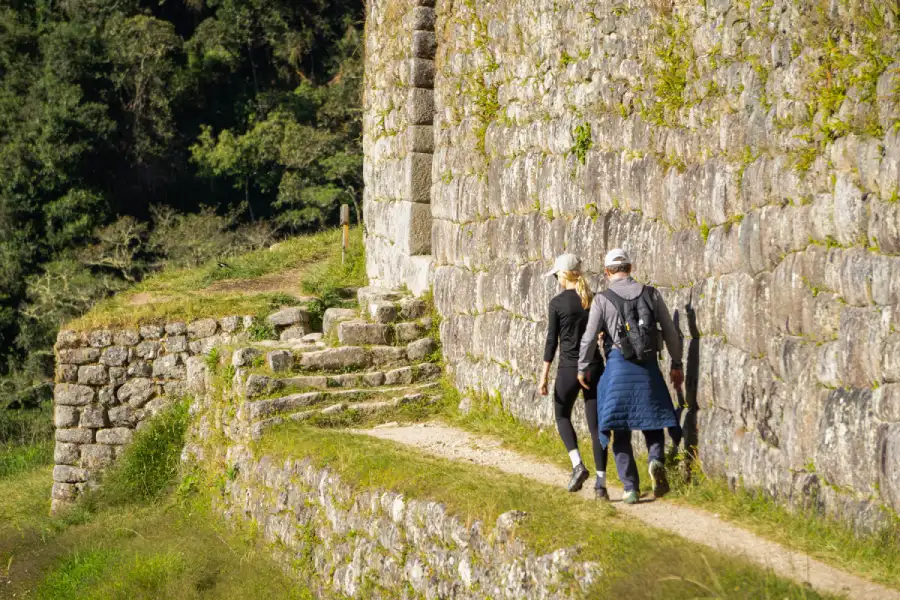 • Walk the final and most iconic section of the authentic Inca Trail, following ancient stone paths through lush cloud forest and archaeological sites.